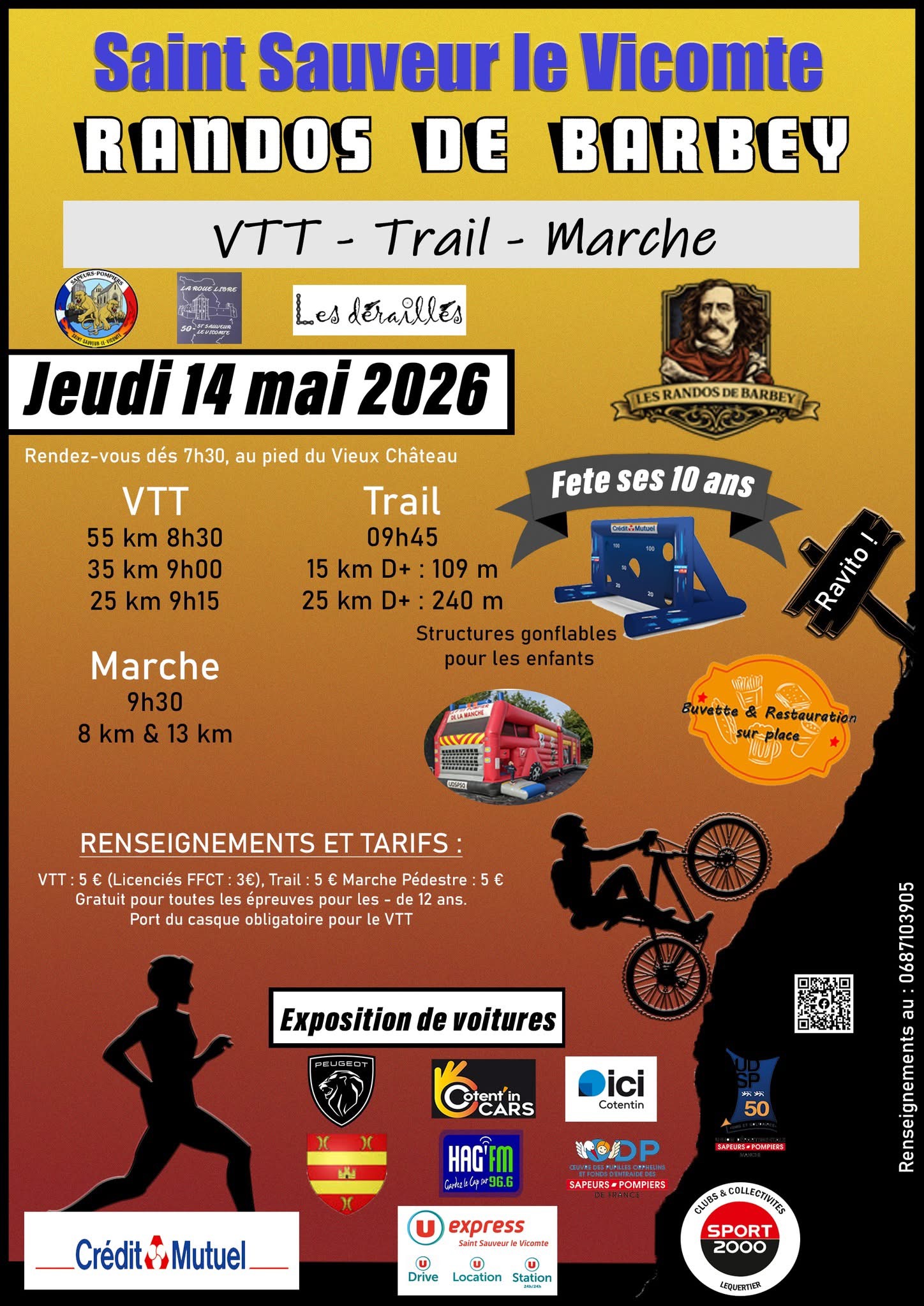 - VTT : 50 km (d+ 578m) : 8h40, 35 km (d+ 360m) : 8h50, 25 km (d+ 271m) : 9h30 et 15 km (d+ 126m) : 10h